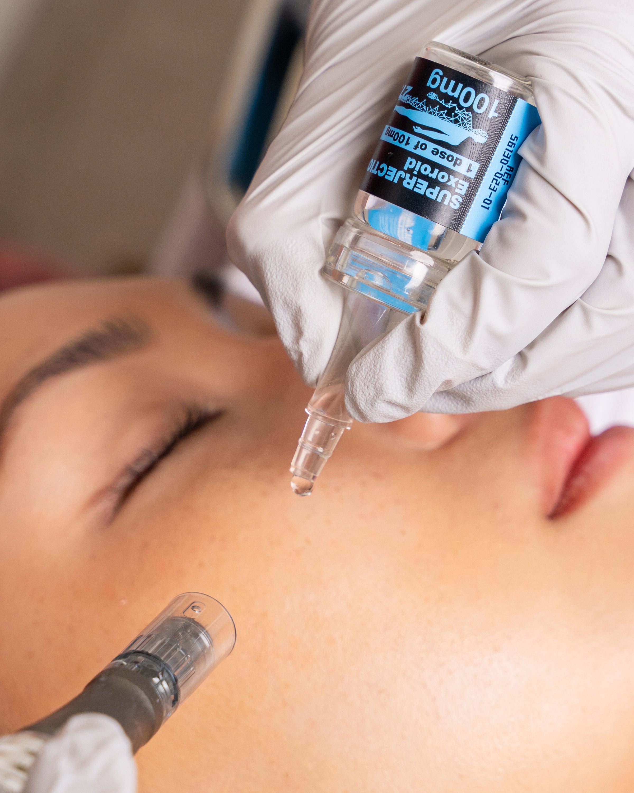 Benefits: Advanced regenerative treatment designed to revive, repair, and rejuvenate aging skin at a cellular level. Formulated with animal-derived exosomes (2 billion cells/ml) and Vitamin B12, this powerful infusion delivers immediate firming and plumping while brightening dull skin and enhancing a healthy, radiant glow. Combined with microneedling, the treatment stimulates cellular renewal, supports tissue repair, strengthens the skin barrier, and reduces inflammation—helping soften fine lines, improve elasticity, calm redness, and leave the skin smoother, more resilient, and visibly refreshed.
